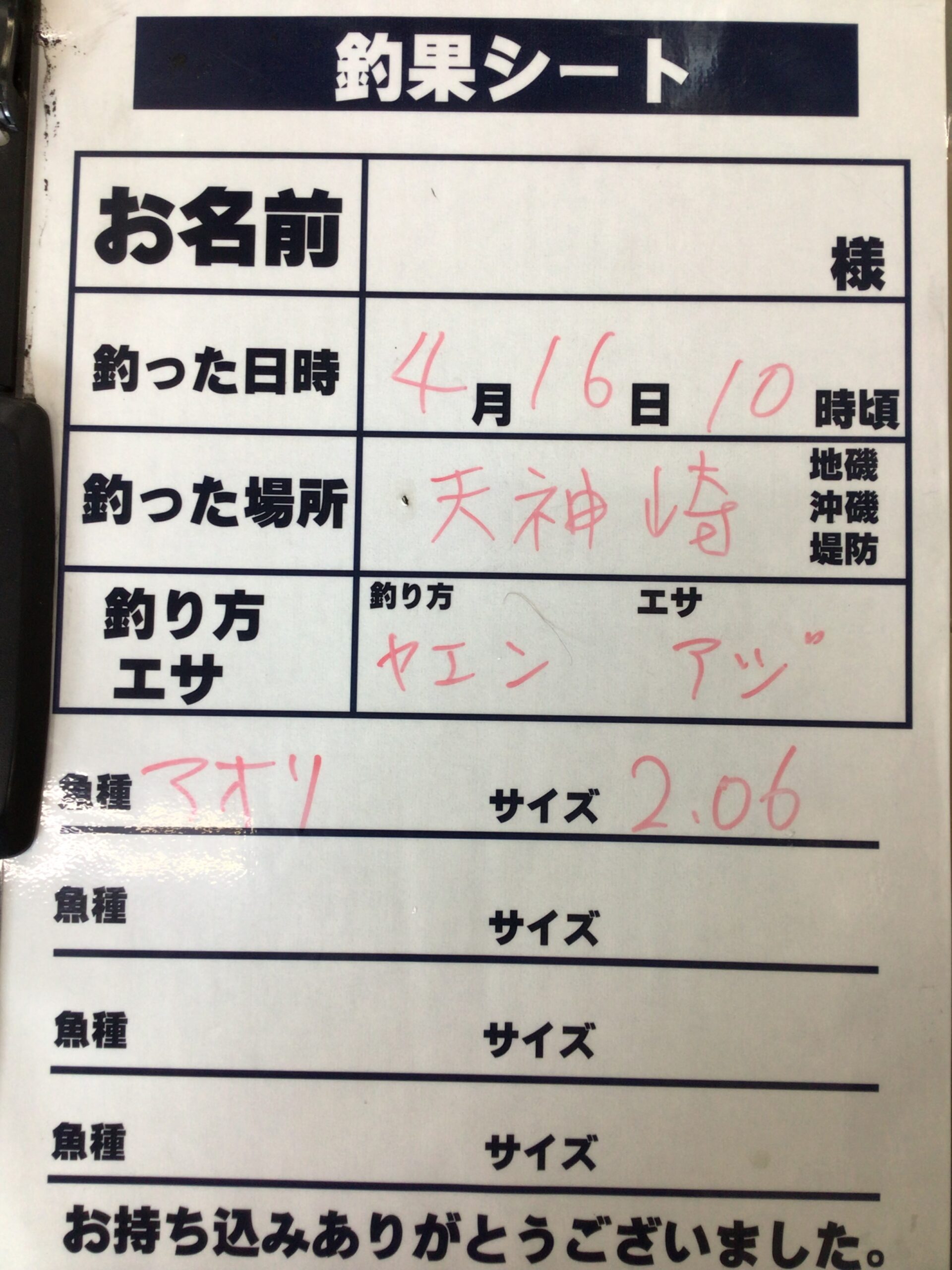 4/16 アオリイカの釣果 2060g 田辺天神崎、ヤエン釣りにて