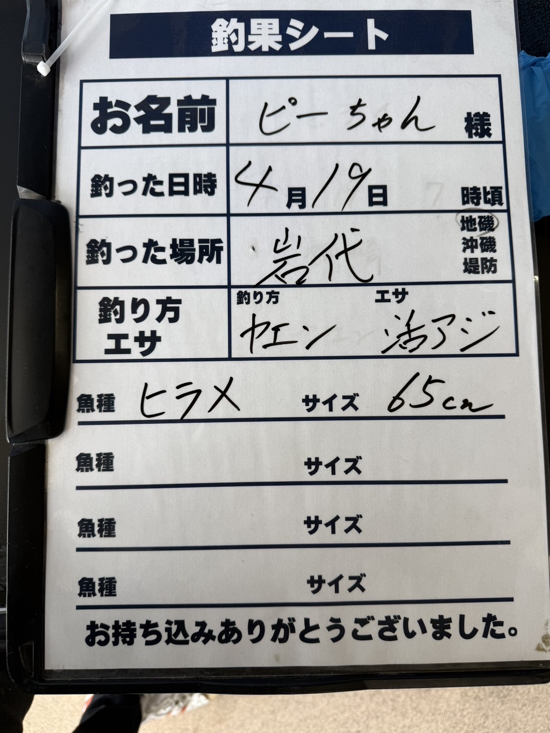4/19 岩代にてヒラメ65㎝の釣果!