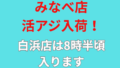 お待たせ致しました!みなべ店、活アジ入荷しました。