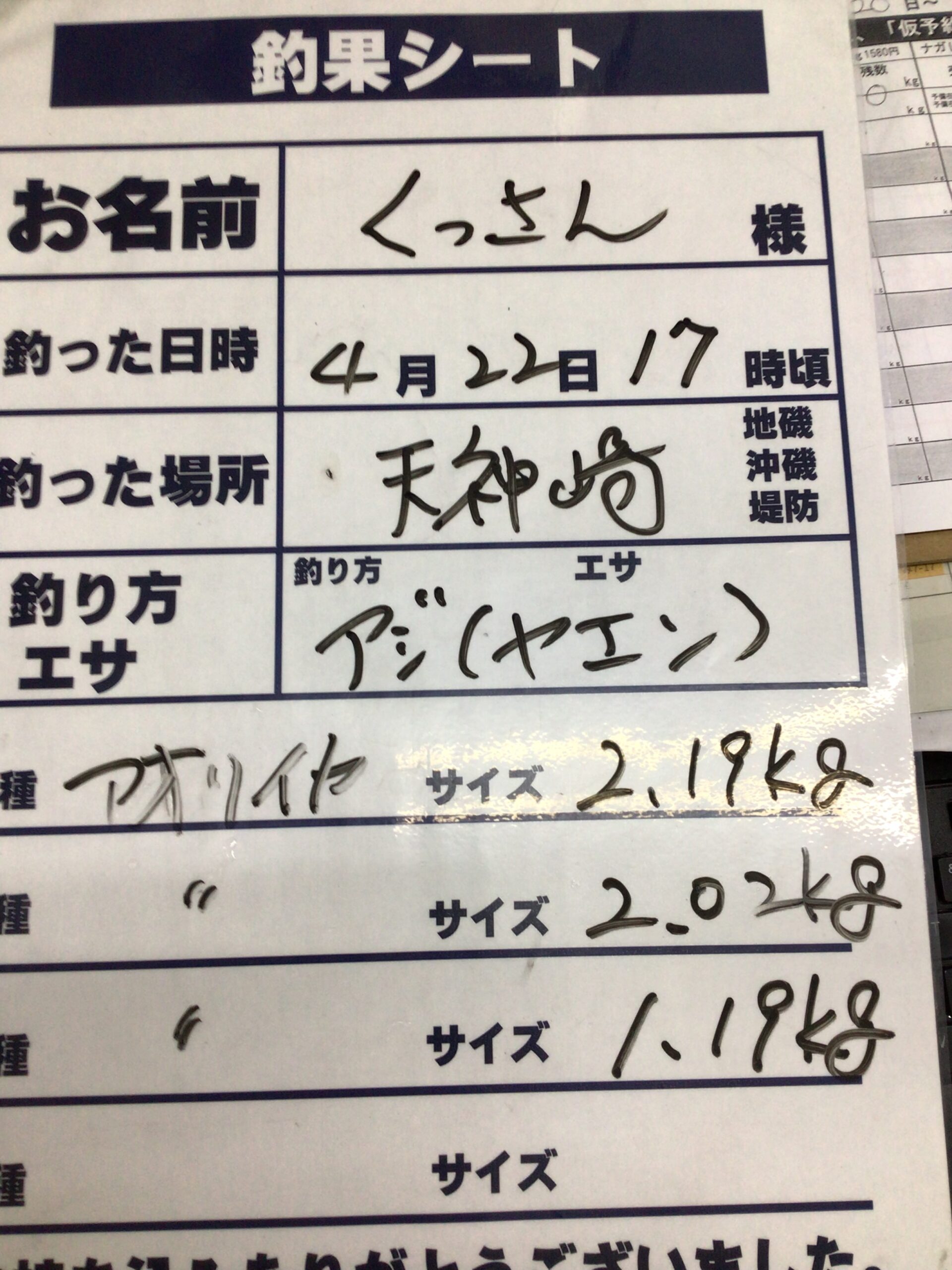 4/22 アオリイカの釣果 2190g 天神崎釣り場、ヤエン釣りにて