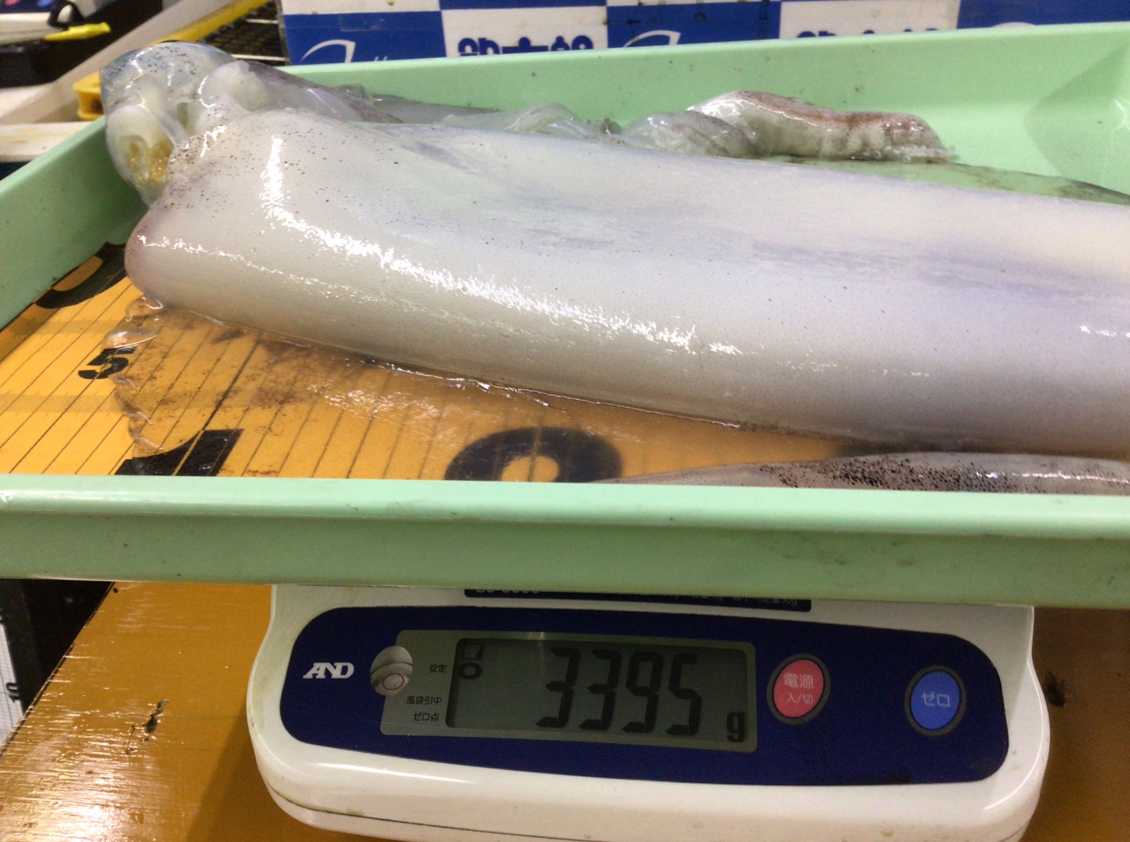 4/23 (水) 白浜町見草堤防にてアオリイカ3395g ヤエンにて