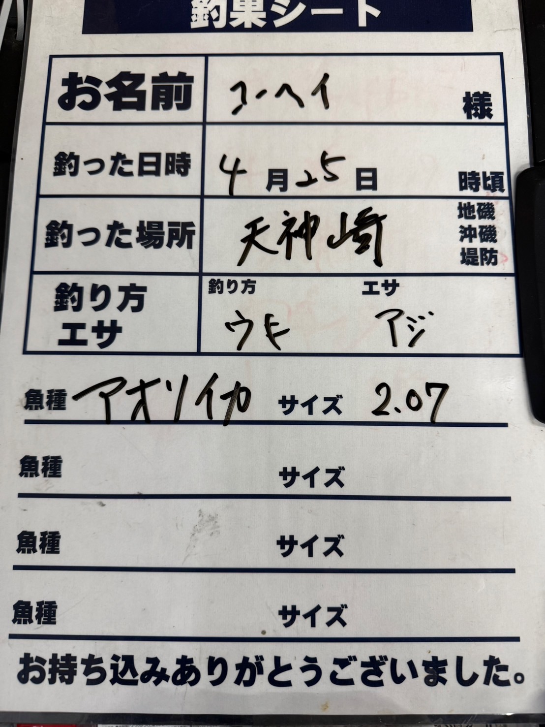 4/25 アオリイカの釣果 2070g 天神崎ヤエン釣りにて