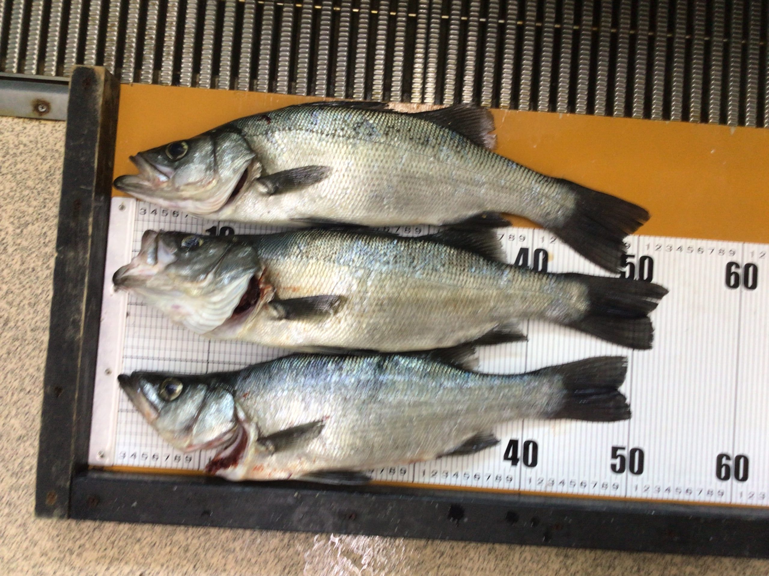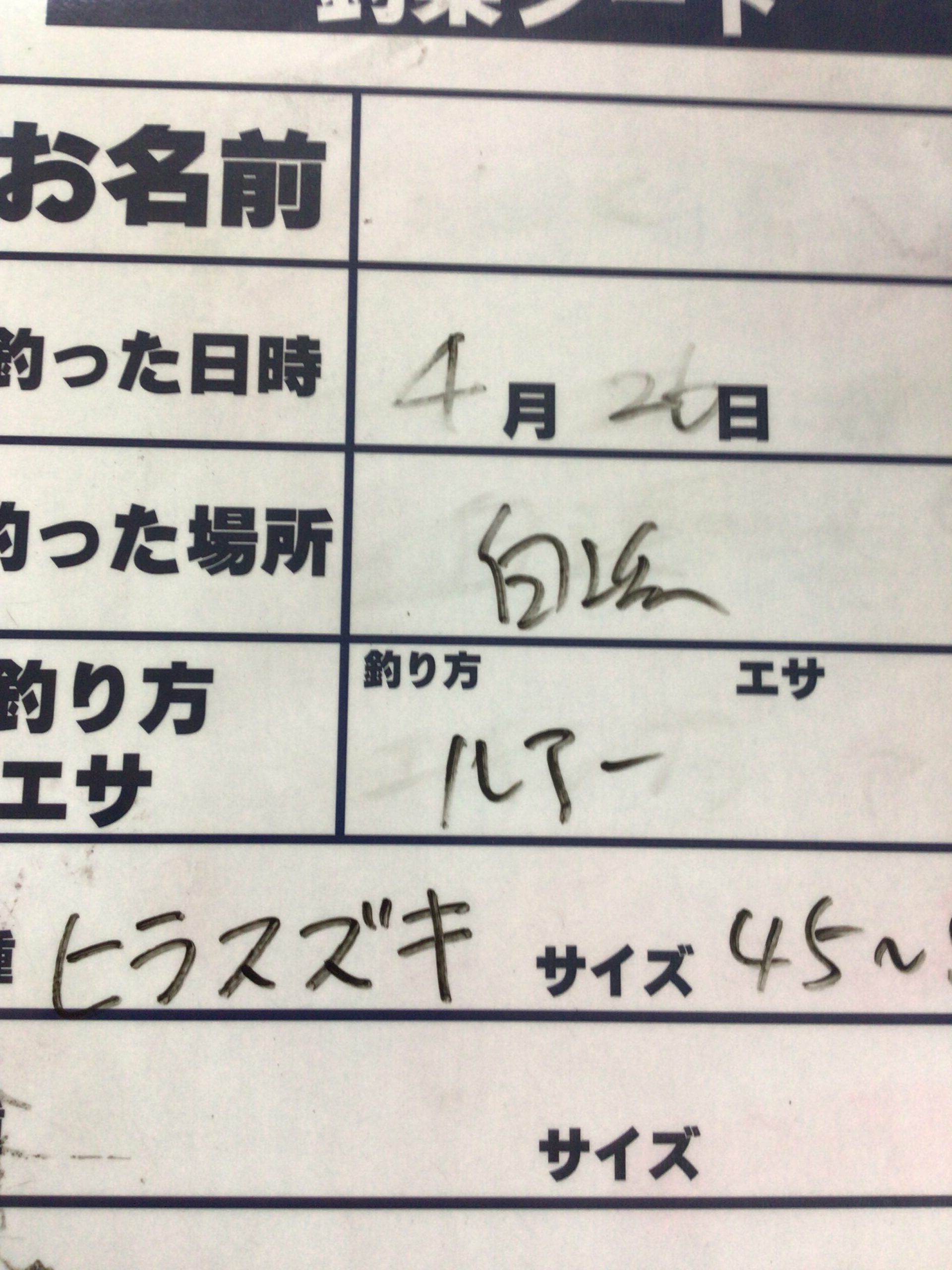 4/26 ヒラスズキの釣果 45~50cm 白浜地磯、ルアーにて
