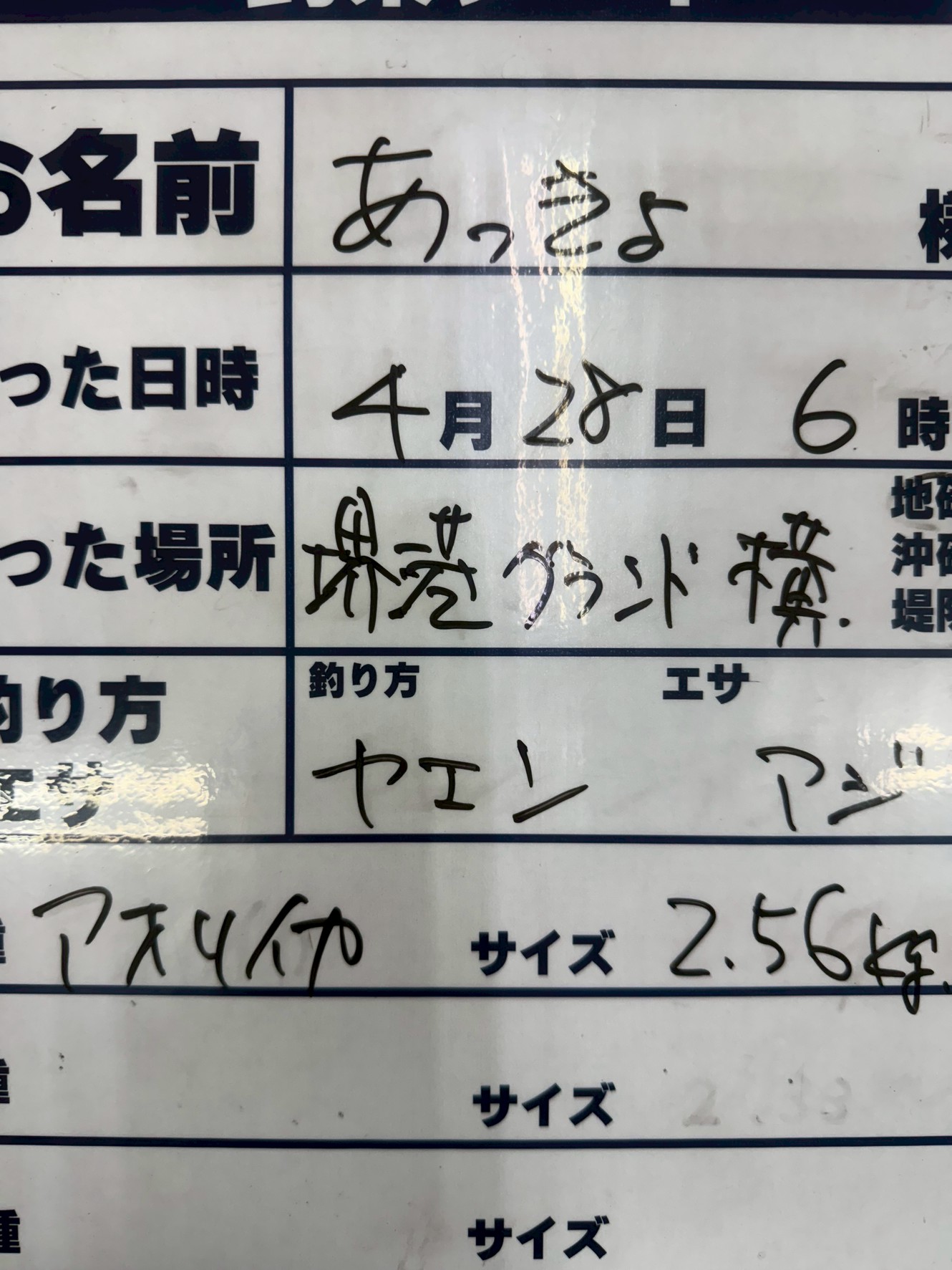 アオリイカ2560gの釣果。みなべ堺グランド横ヤエン釣りで。あっきょ様。