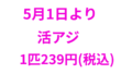 5月1日より活アジ1匹239円ですが、10匹までの規制はしばらく延期致します。
