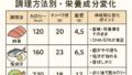 【20cmのマアジ】調理方法別・栄養成分変化一覧表(可食部100gあたり)