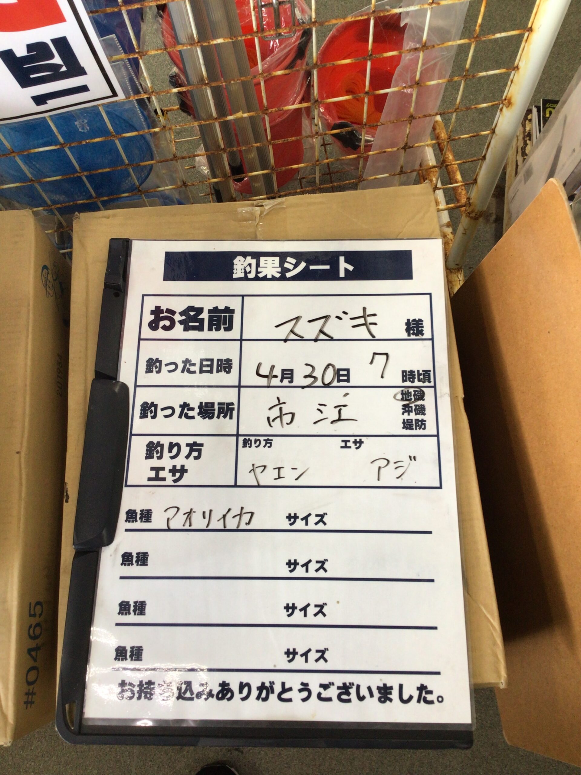 4/30 アオリイカの釣果 6杯 計9130g 市江、ヤエン釣りにて