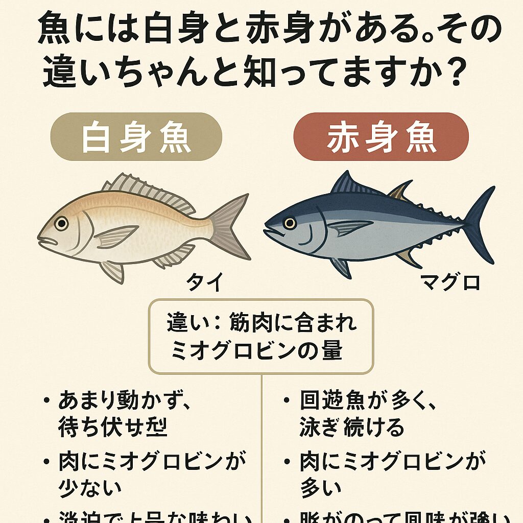 魚の白身と赤身の違いは、筋肉の使い方・生活環境・ミオグロビンの量で決まります。