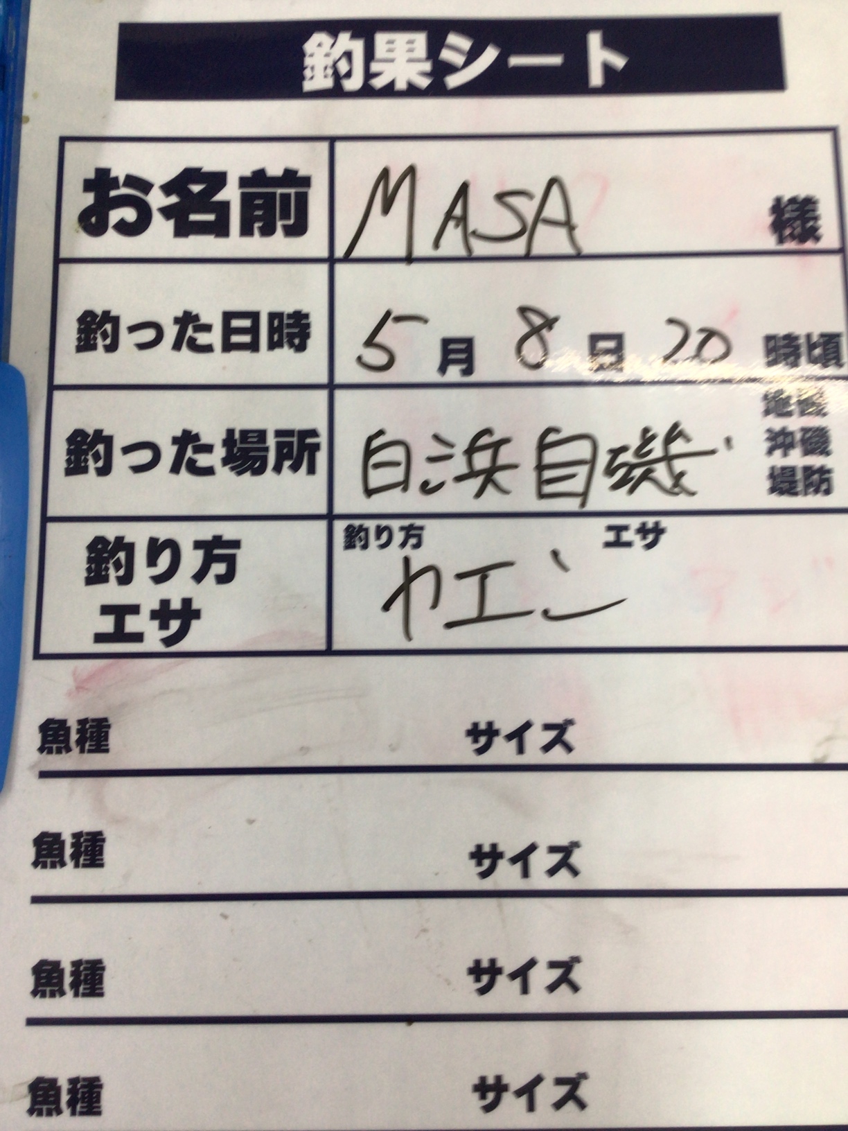 5/8 (木) 白浜地磯にてアオリイカ2160g ヤエンにて
