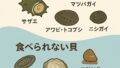 潮だまり(タイドプール)で見られる貝の中には、「食べられるもの」と「食べられないもの」が混在しています。