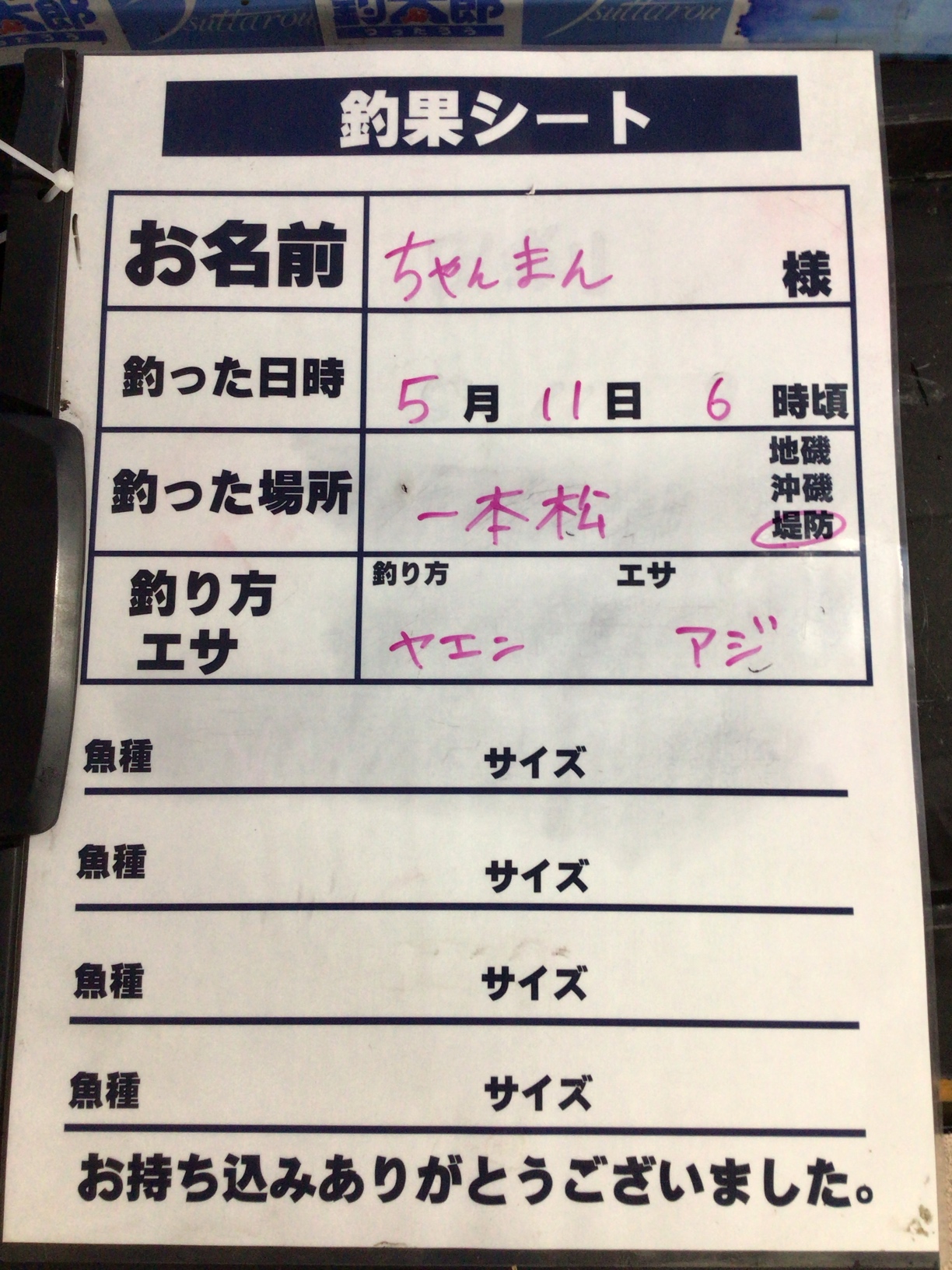 5/11 一本松漁港でアオリイカ ヤエン釣り