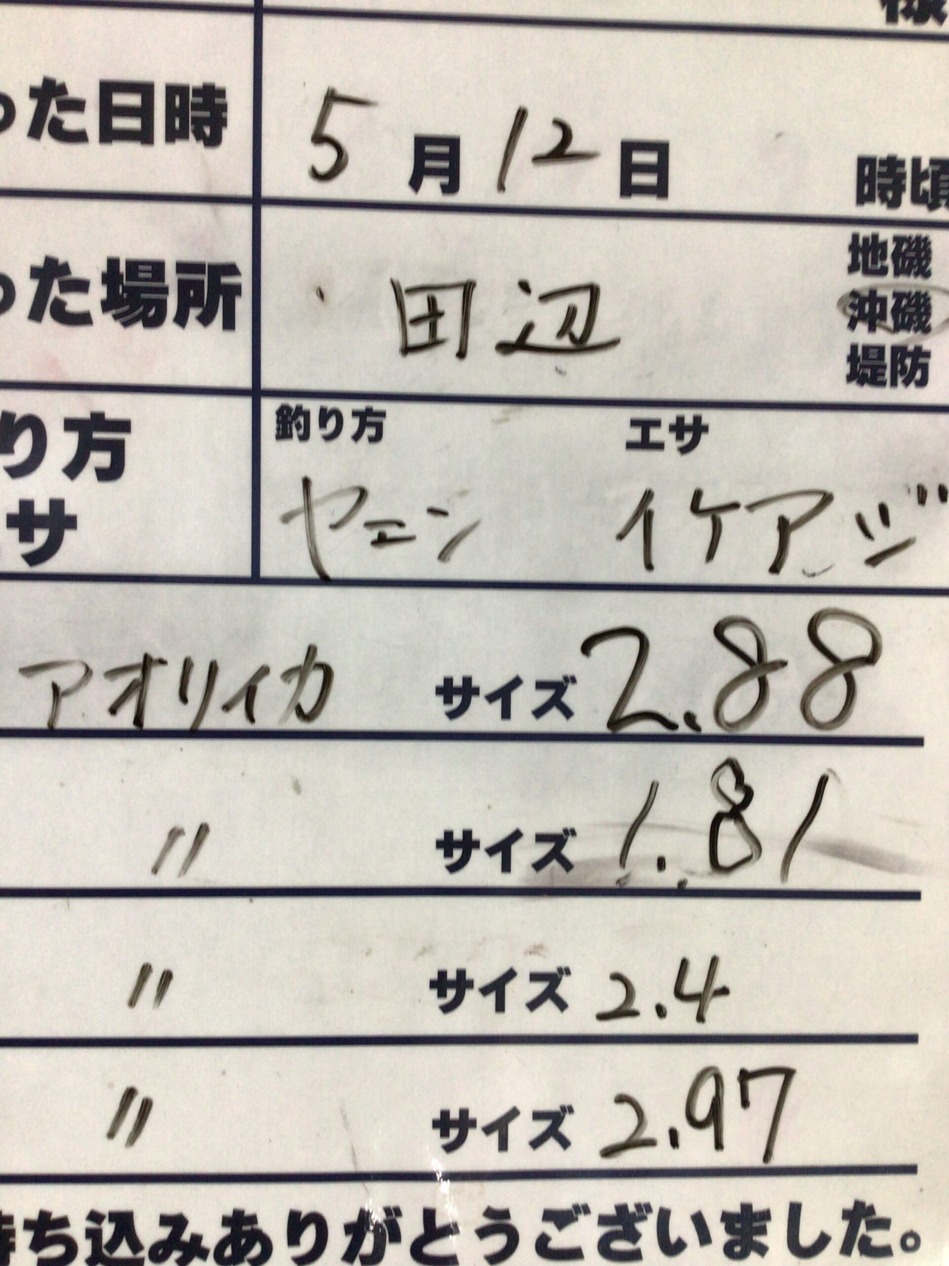 5/12田辺沖磯でアオリイカ2.88㎏ 1.81㎏ 2.40㎏ 2.97㎏ ヤエン釣り釣果
