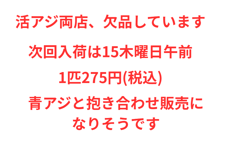 活アジは漁獲量が不足し価格高騰しており、1匹300円で販売している店もあります。