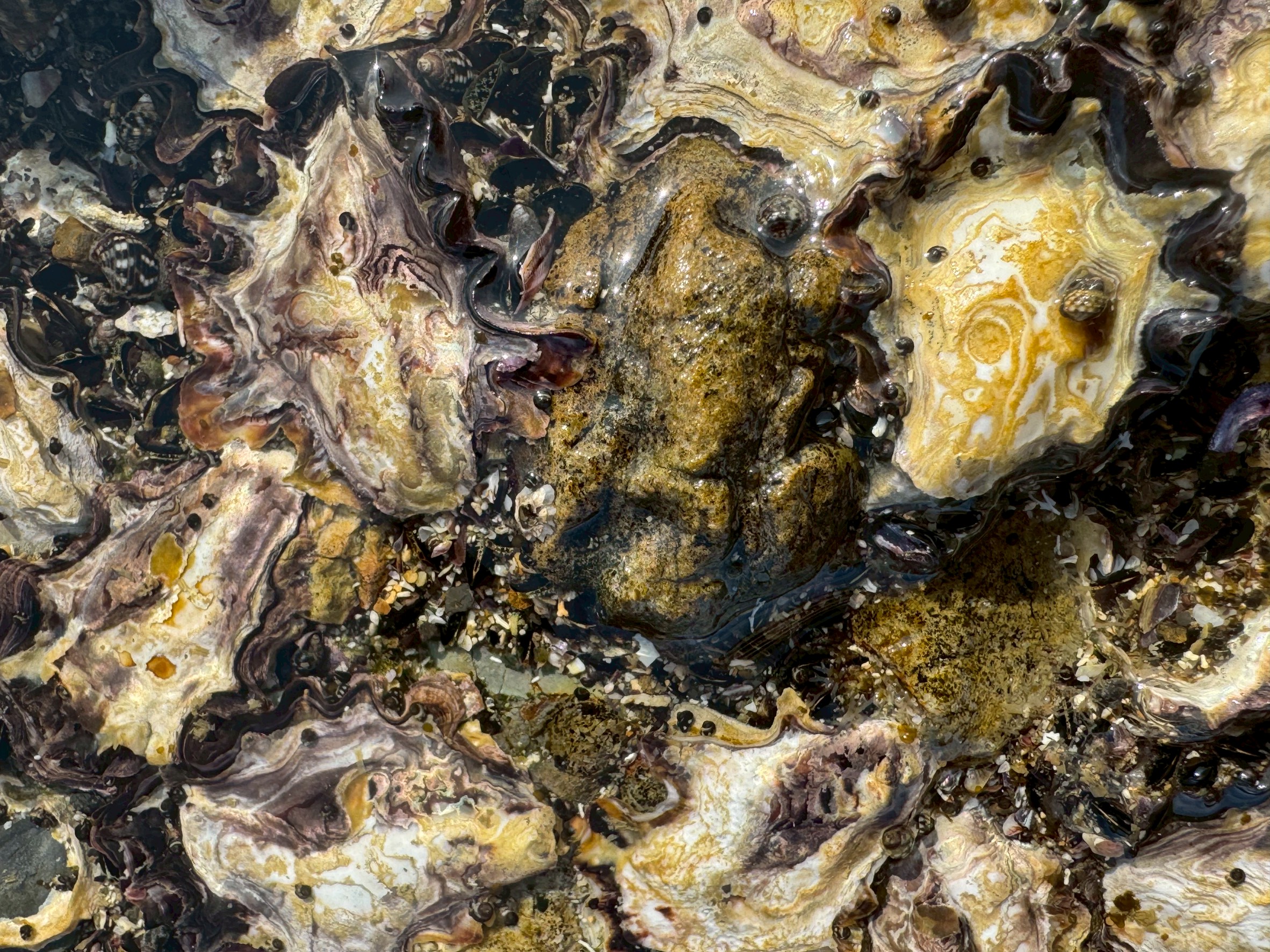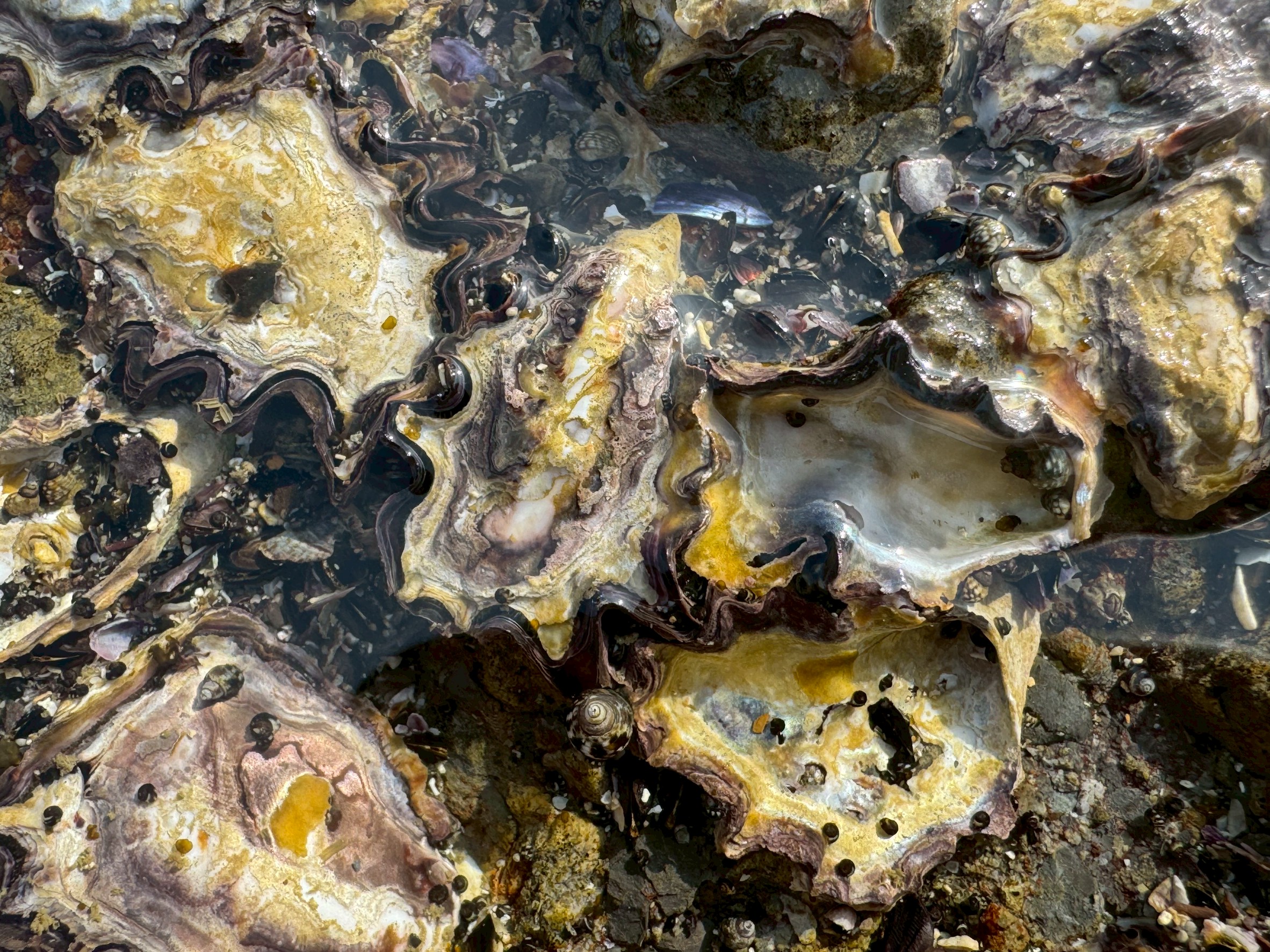 これらの岩牡蠣は、非常に強い力で岩に固着し、その殻は層が重なり合って発達するため、非常に硬く、そして鋭利です!