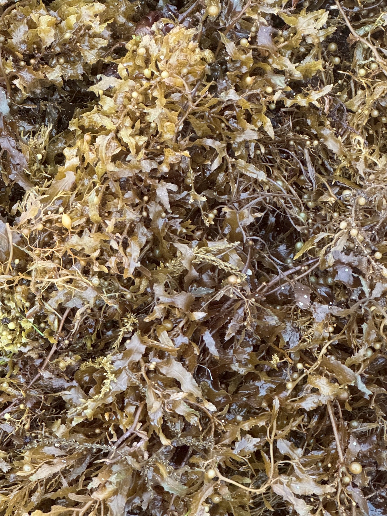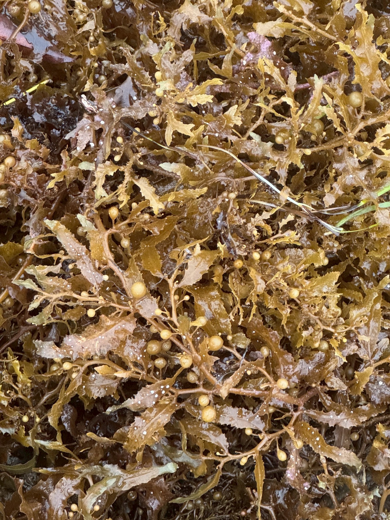 この写真に写っている海藻は、「ホンダワラ類(ホンダワラ属:Sargassum)」と考えられます。