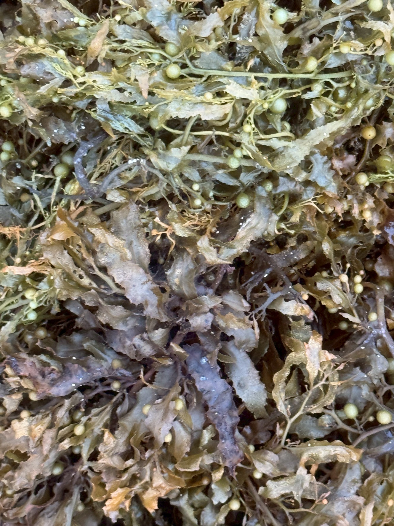 ・多数の「浮き袋(気胞)」がついており、丸い球状で目立つ