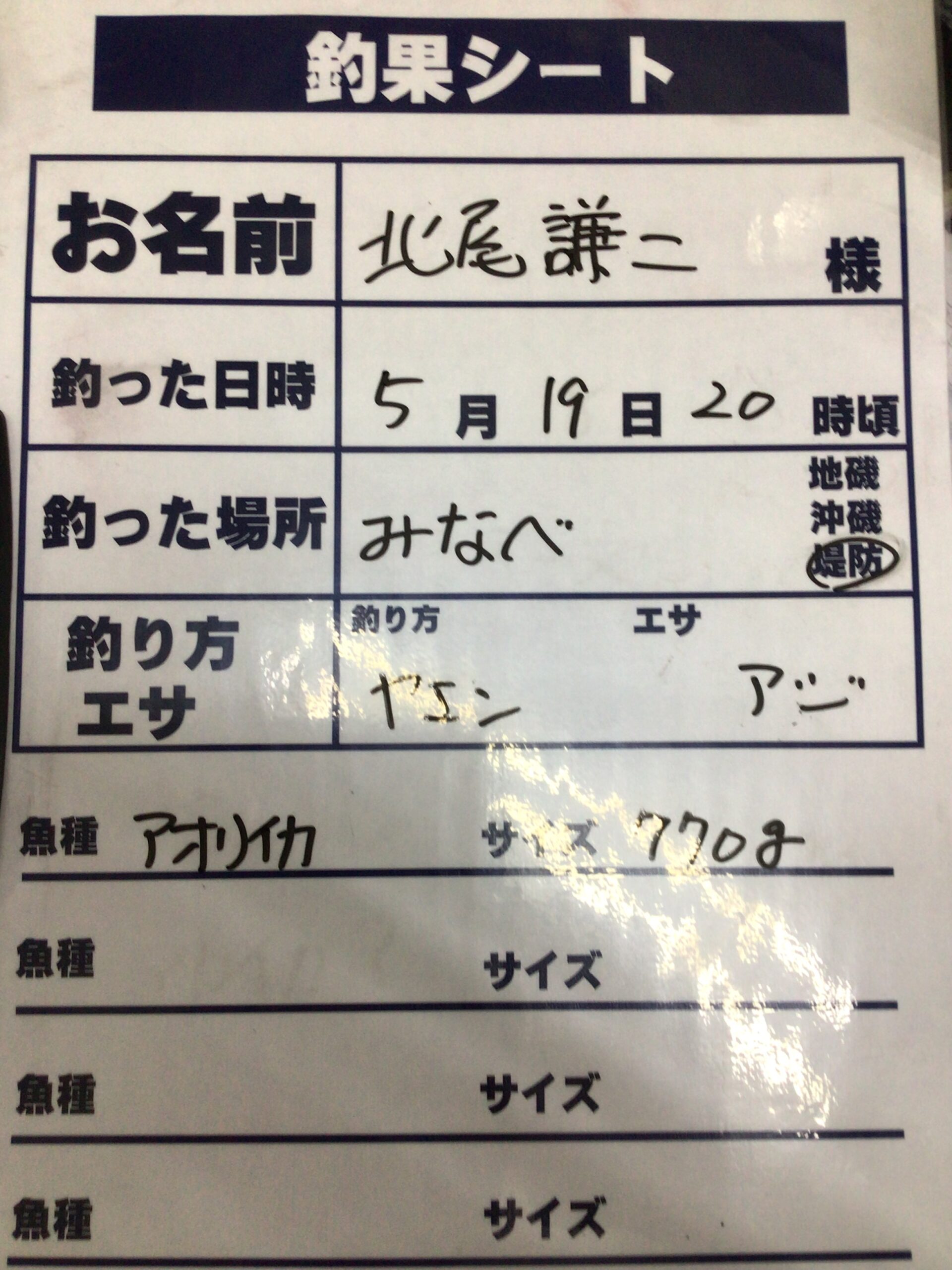 ●5/19 アオリイカの釣果 770g みなべ釣り場、ヤエン釣りにて