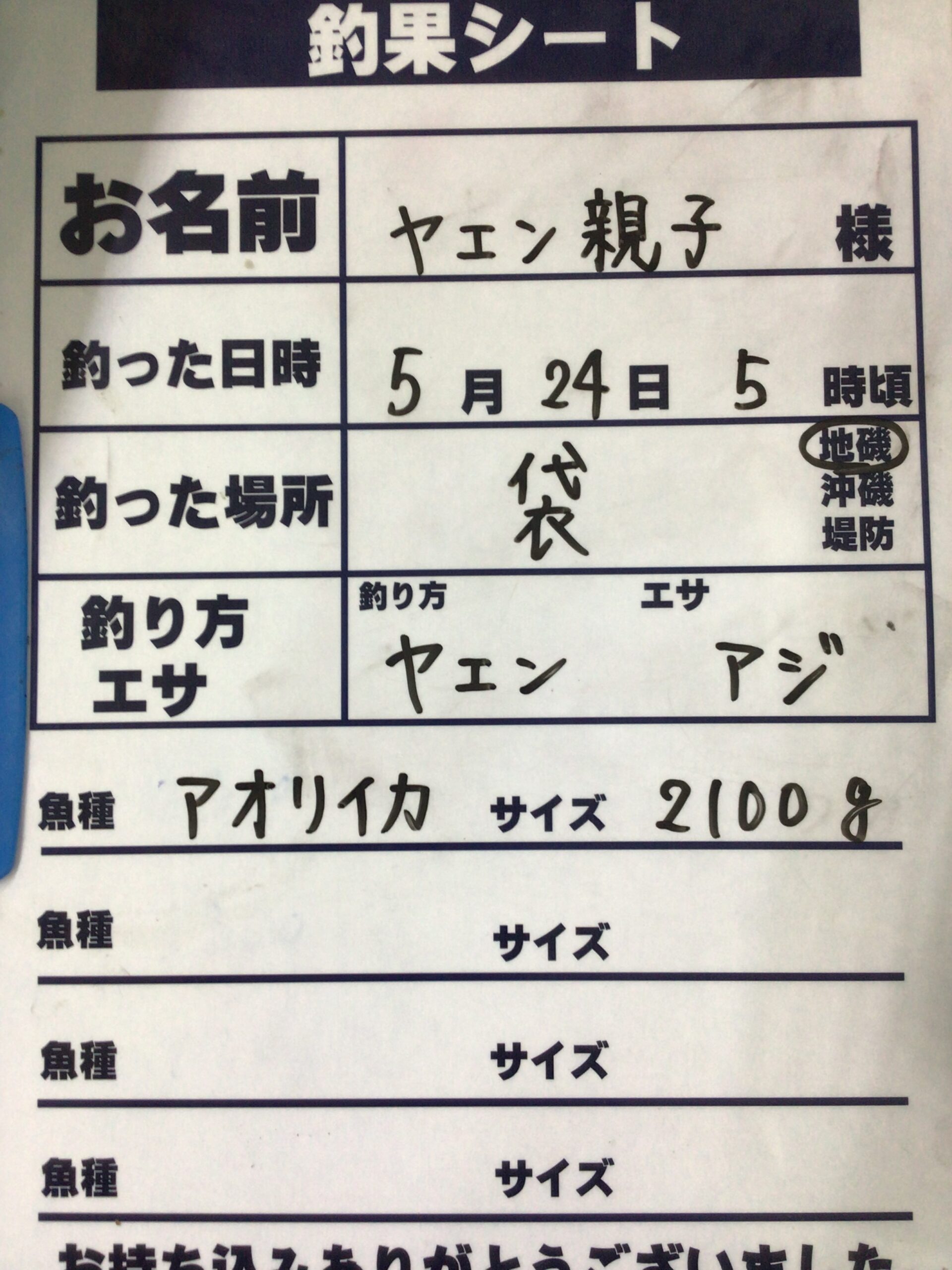 5/24白浜袋にてアオリイカ釣果 2.1㎏