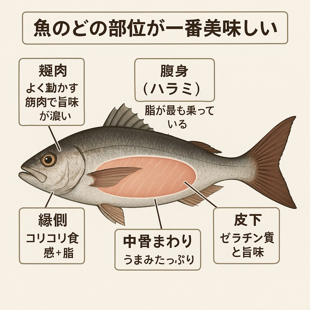 | 中骨まわり | 多い | ねっとり | 非常に強い | 隠れた旨味の宝庫。 |