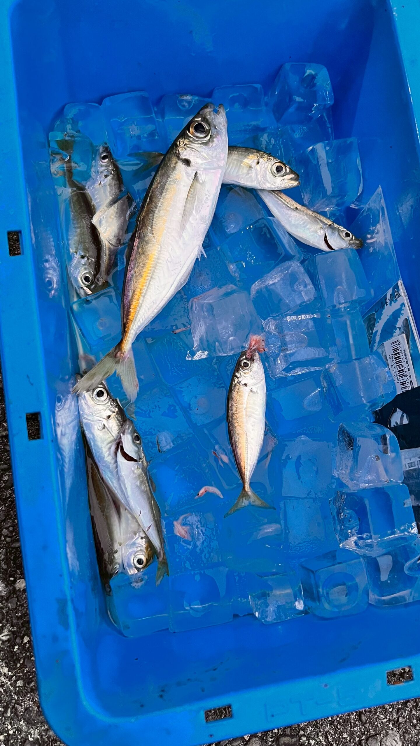 白浜町袋漁港ぼちぼちと豆アジ釣れています。 波止釣り・サーフ釣り釣果 2025.05.25 なかにイカ釣り出来そうなサイズも混じっていますが、 小サバが多すぎるので、なかなかアジがいる棚まで、サビキ仕掛けが落ちません。 サビキは豆アジサビキの1号が良いです。2号は針外れが多いです。