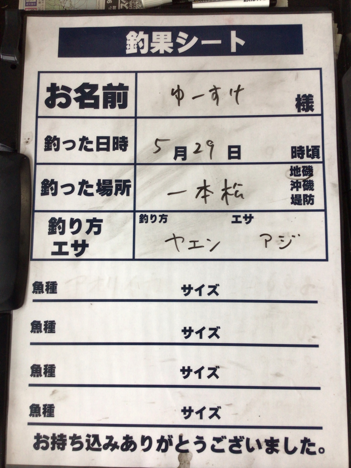 5/29 一本松でアオリイカ1.4㎏ 初めてのヤエン釣り