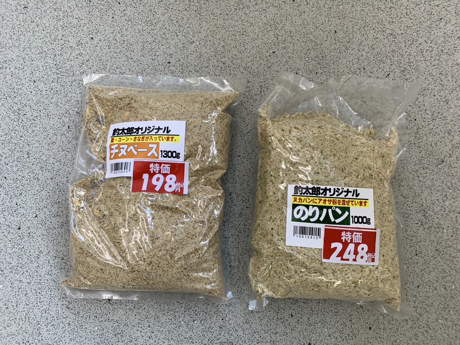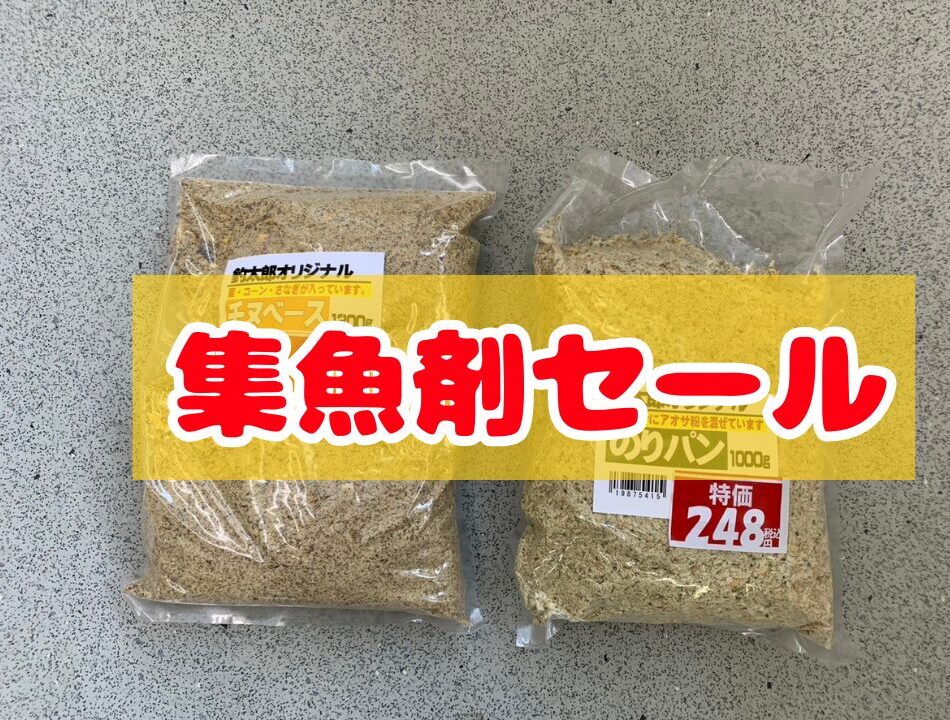 集魚剤セール始めました!のりパン248円&チヌベース198円の大特価です! 未分類 2025.06.06 のりパン1000g通常価格 398円→248円 チヌベース1300g通常価格 398円→198円 在庫限りで終了です! 是非お買い求めください!