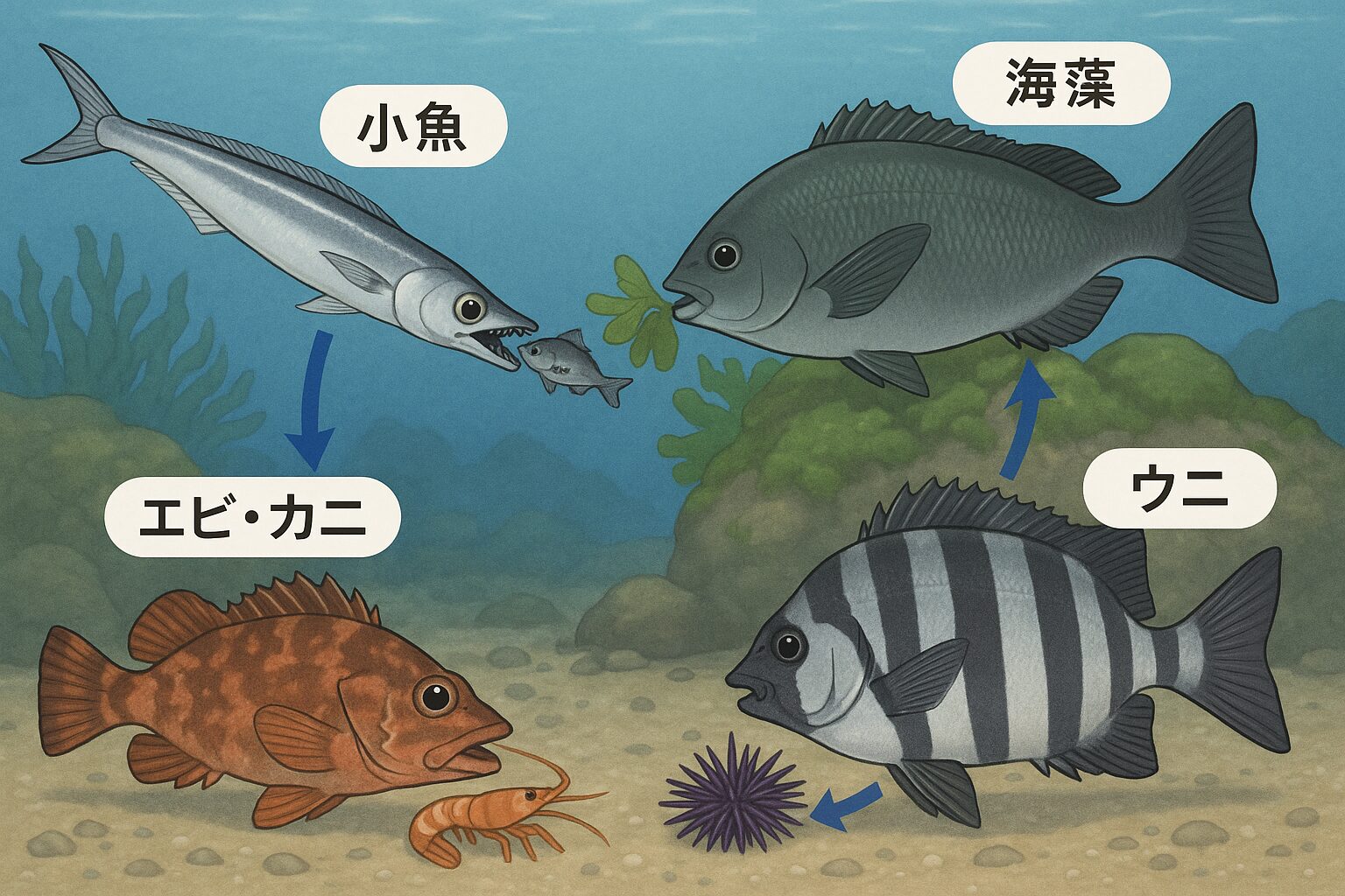 ・さらに、「目がいい魚」「においで探す魚」「じっと待つ魚」など、狩りのスタイルにも違いがあります。