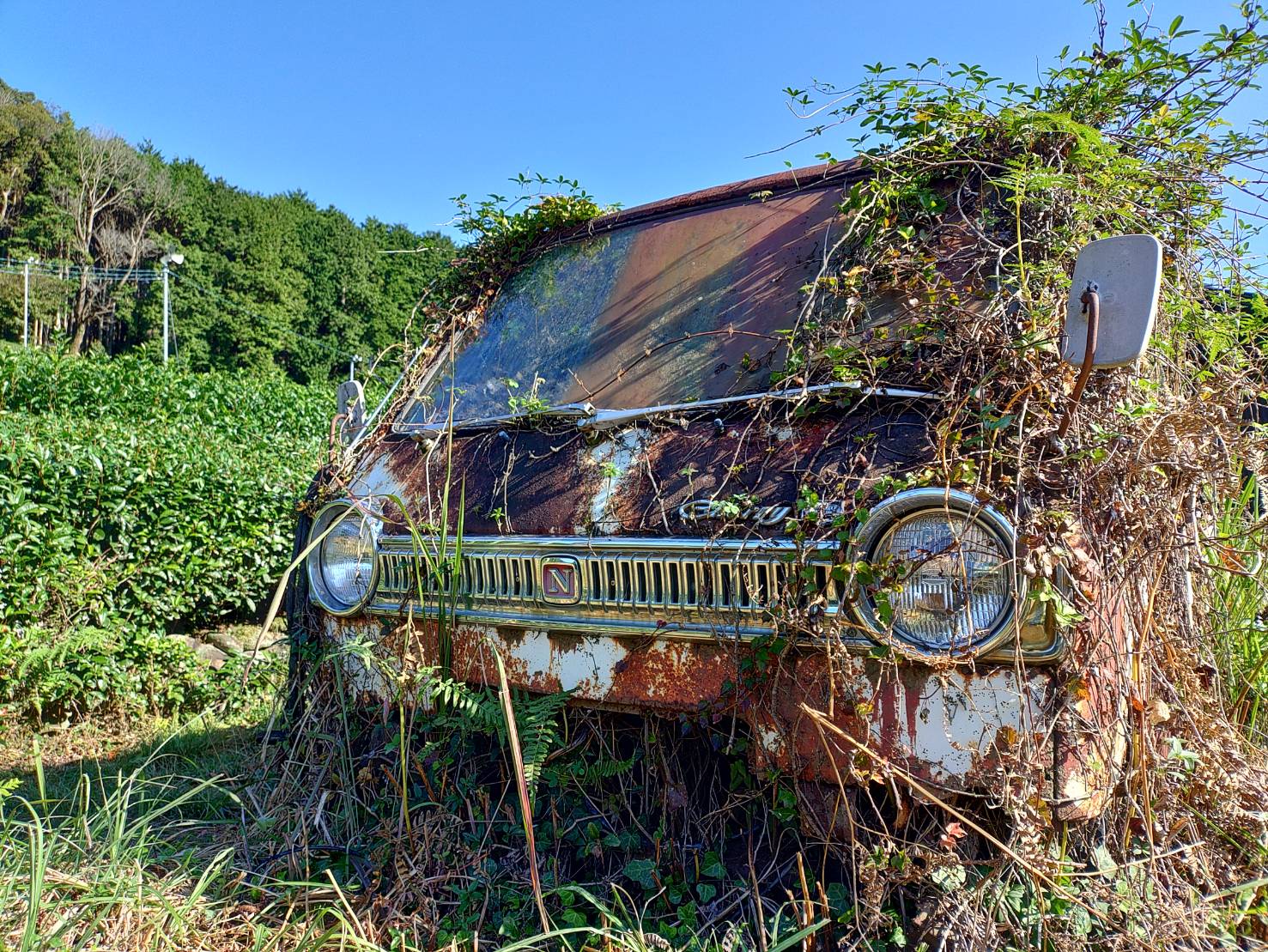「草ヒロ」は、「草むらのヒーロー」の略で、草むらや山中、空き地などに自然に溶け込むように放置された錆びた廃車のことを指す言葉です。