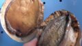 アカアワビとクロアワビの吸着面(足)の色の違い