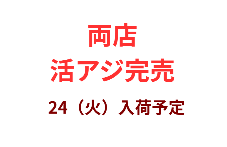 活アジ、両店完売しました。次回は本日24(火)午前入荷予定。