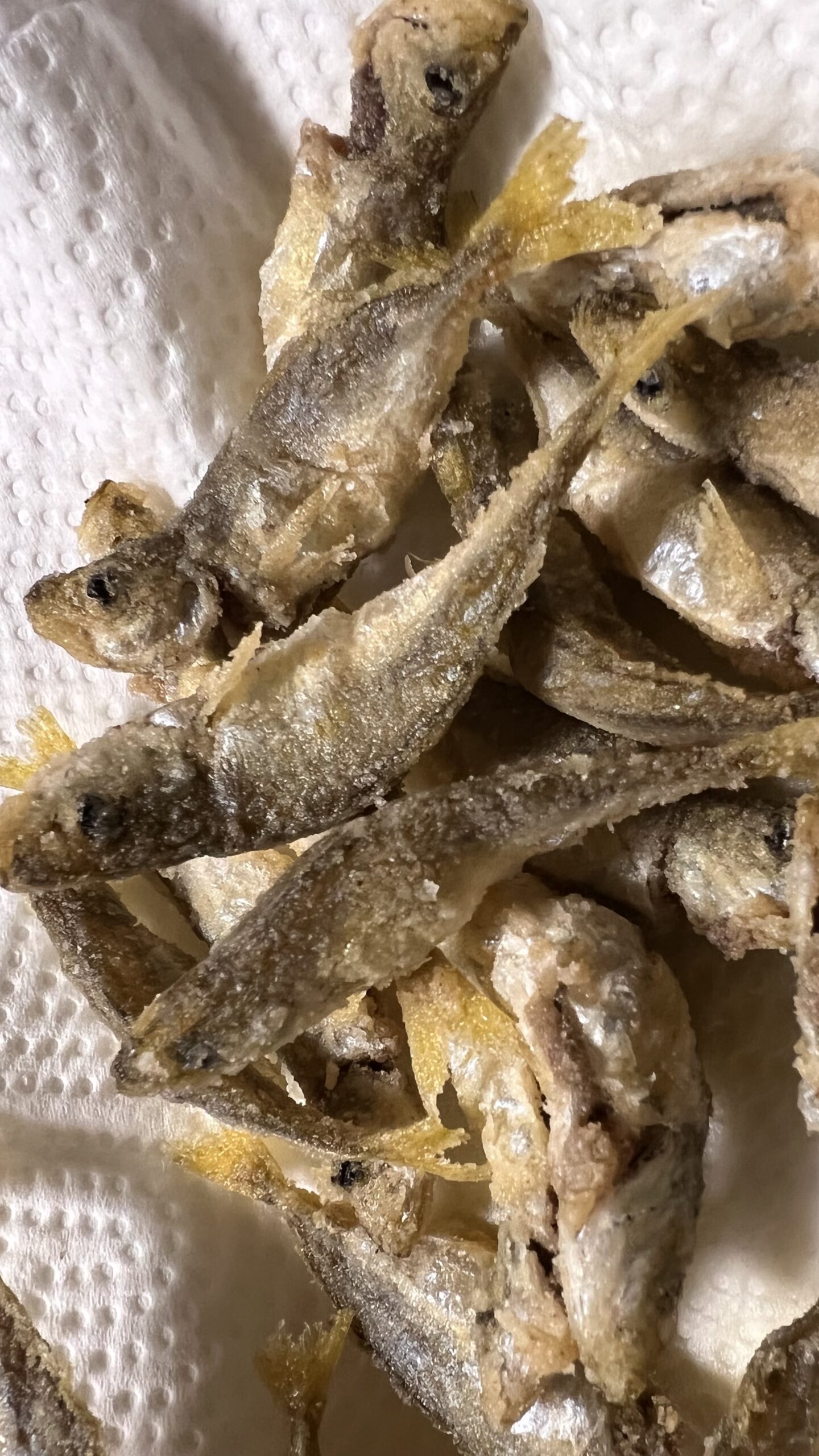 - 下準備が肝心: 新鮮な豆アジを用意しましょう。まずは内臓を取り除いてきれいにします。頭はそのままにして揚げると、さらにカリカリ感がアップして美味しいですよ。きれいに洗ったら、キッチンペーパーで水気をしっかりと拭き取りましょう。この一手間が、最高のカリカリ食感を生み出す秘訣です!