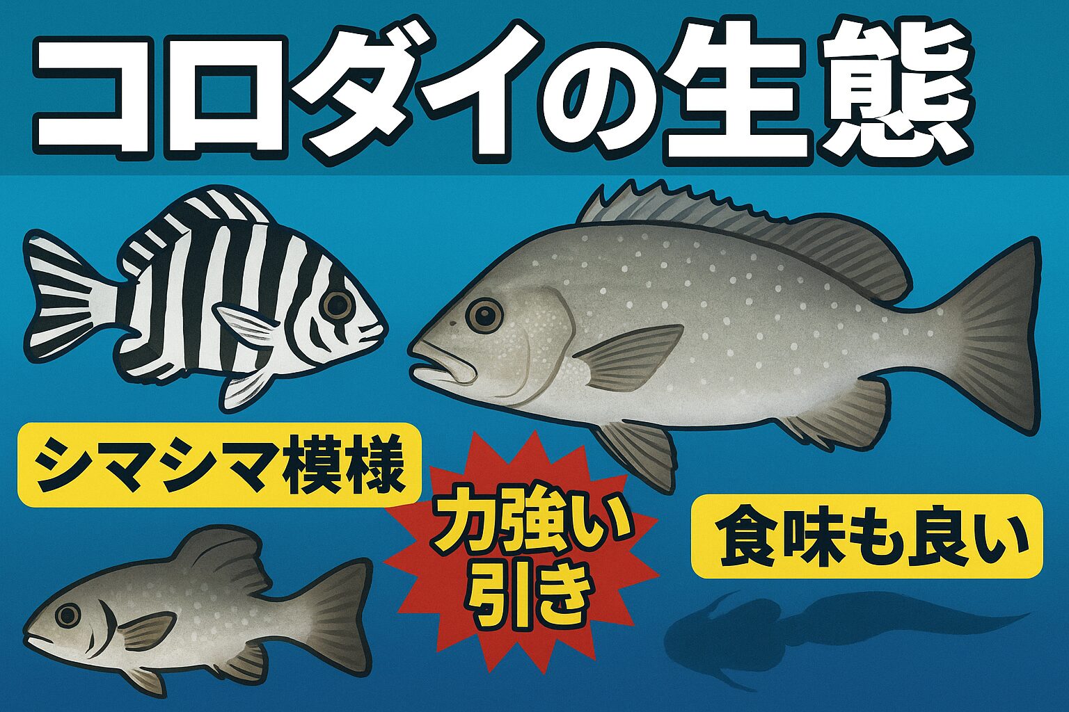 ・コロダイは、成魚と幼魚で模様が変わる面白い魚。