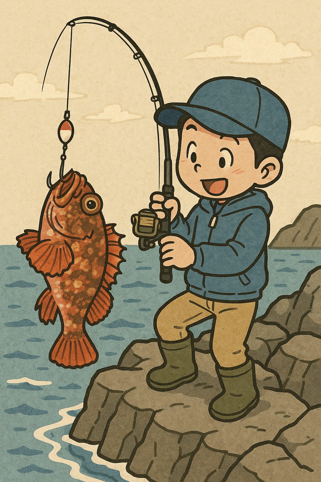 (Bメロ) 坊主なし! 約束された時間 堤防からのガシラ釣りは 家族みんなで 楽しめるんだ 笑顔が溢れる 素敵な一日