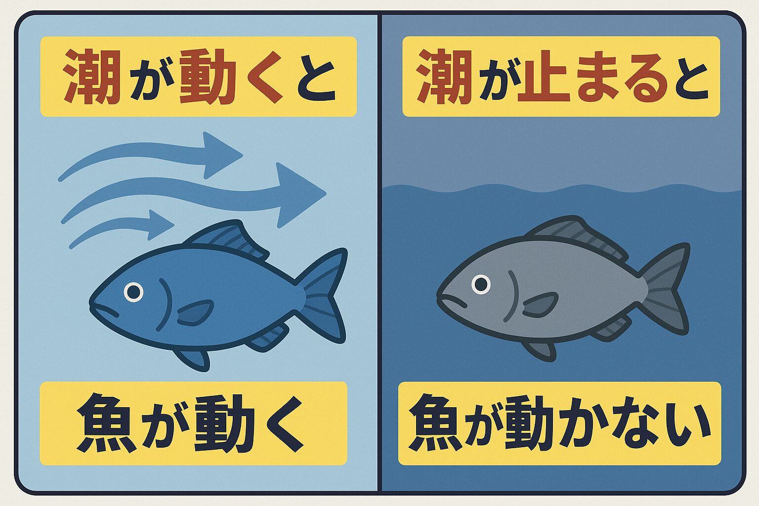 「潮が動くと魚が動き、潮が止まると魚が動かない」