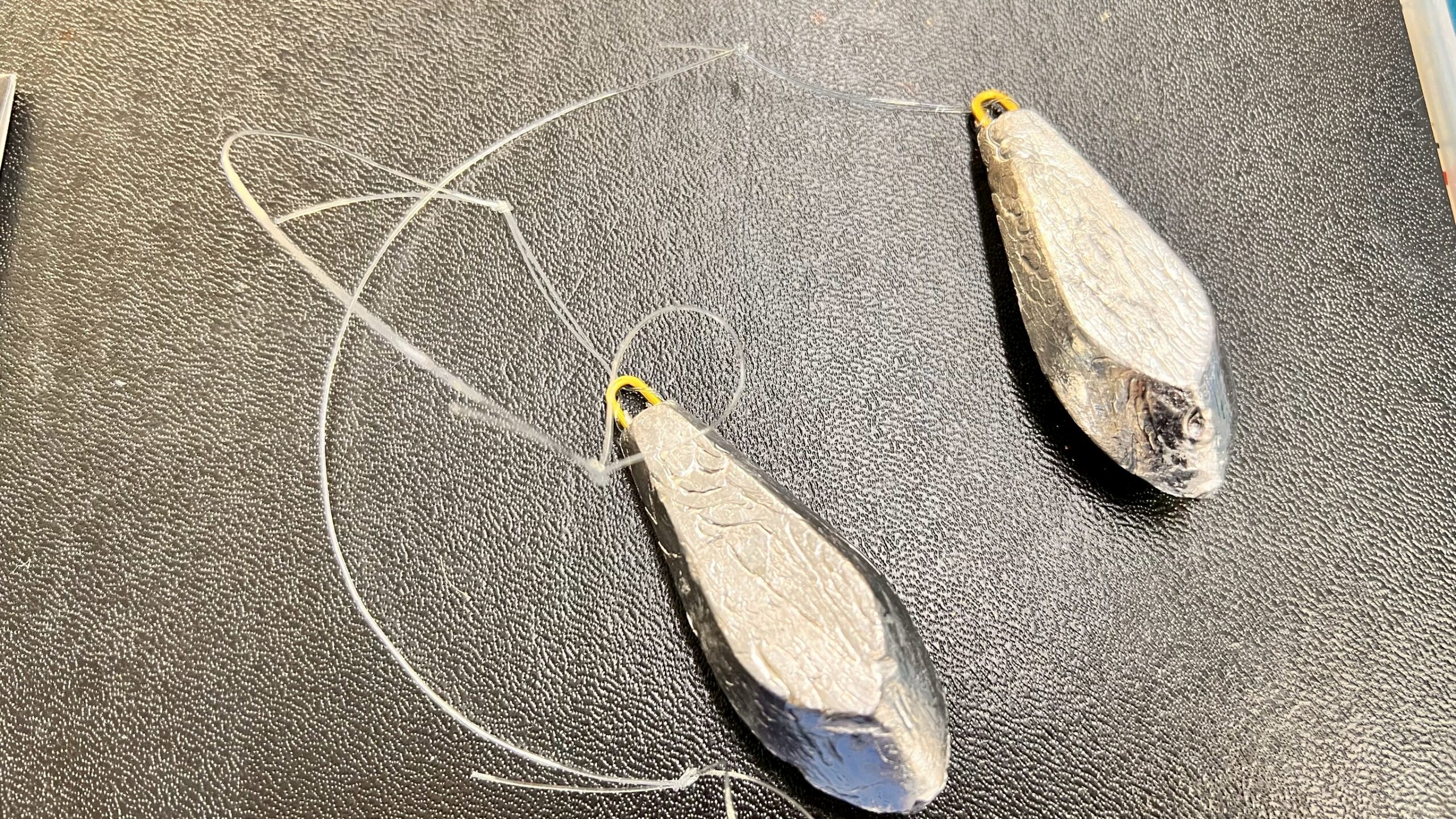 ぶっこみ釣りの捨て糸、捨てオモリは六角オモリを使います。