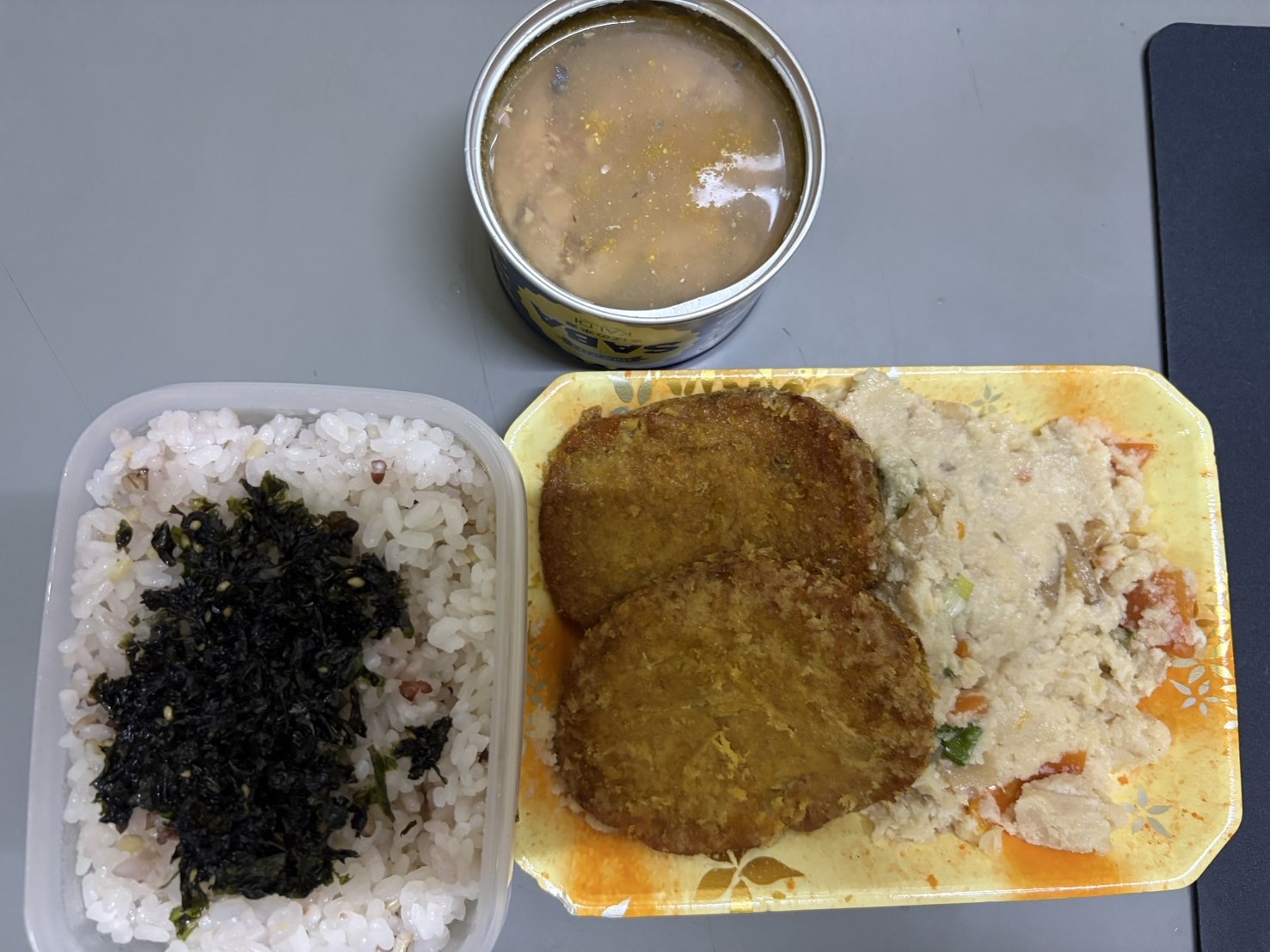 スタッフのお弁当日記 9日目 スタッフの自宅料理 2025.07.01 本日のお弁当は、、、 野菜フライ(カレー味) カルディのサバの水煮缶 卯の花 ご飯は、世界一上手いおばあちゃんが作った米。 ヘルシー志向で十六穀を炊飯する時に入れています。その上に海苔のふりかけ。
