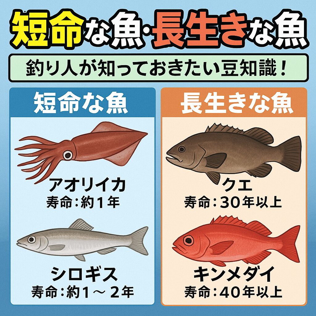今回は、釣り人なら知っておきたい「短命な魚」と「長生きな魚」の違いや特徴を、釣り目線でわかりやすく解説します。