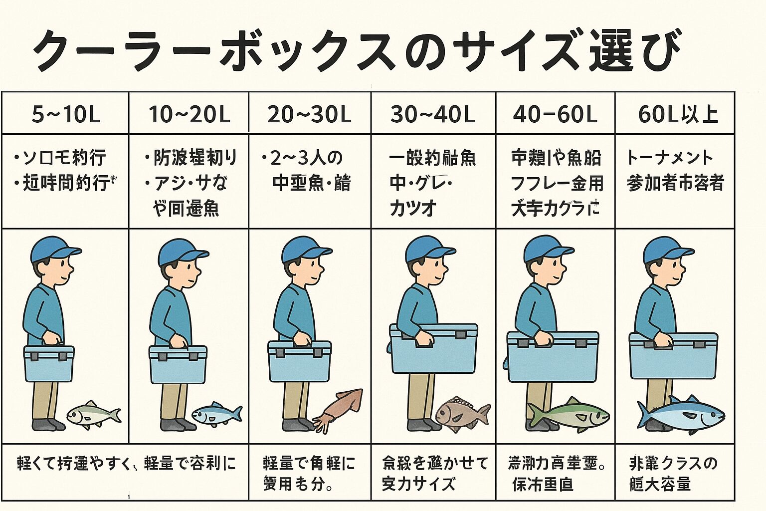 大型魚用、クルマ移動前提。保冷力・容量重視 |