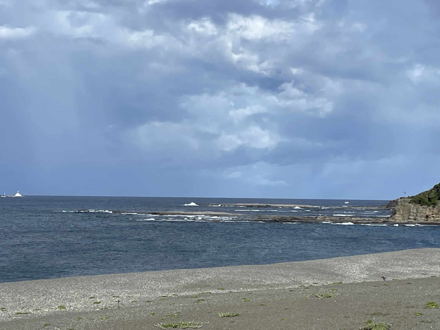 今日は風が強いです 。うねりもあり、かなりの波しぶきが上がっています。7月14日月曜日午前7時半撮影