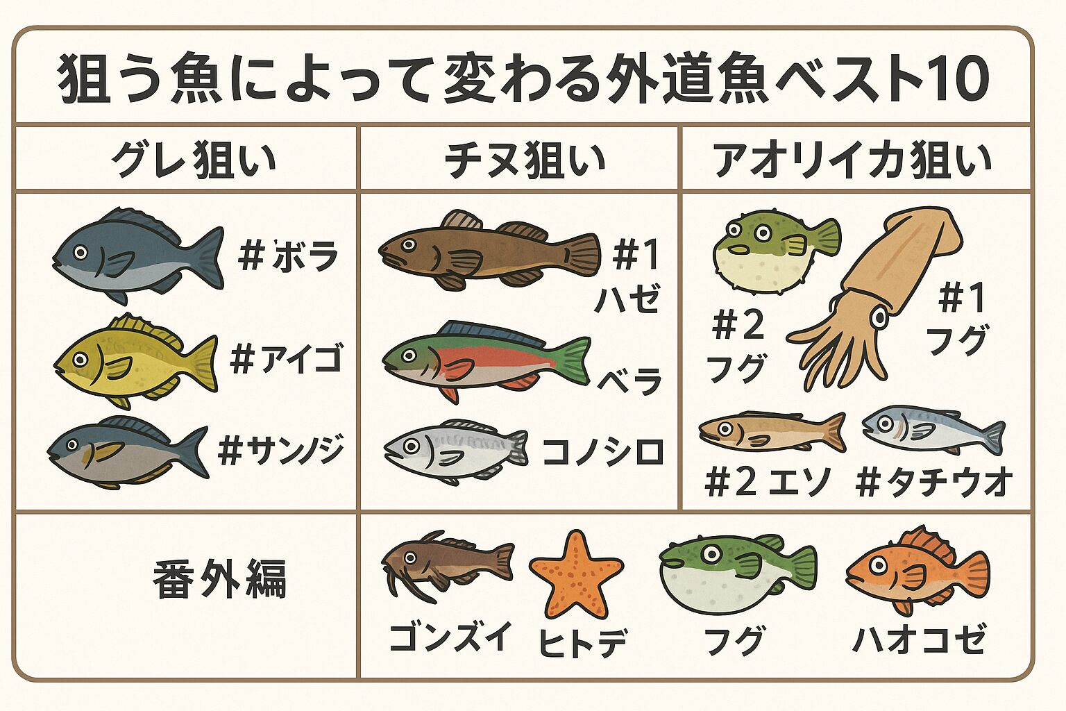 外道魚ベスト10(狙う魚別)