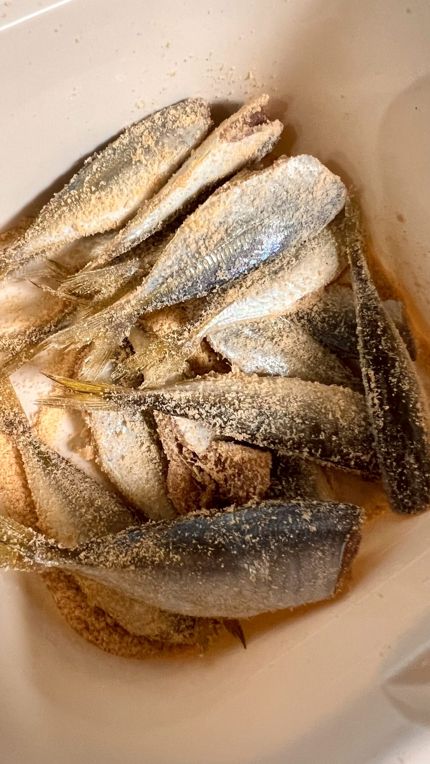 今堤防で釣れている豆アジ、小アジ から揚げにすると美味。カリカリになるまで揚げるのがコツ。 魚料理 2025.07.24 日清のから揚げ粉をつけて、 泡がほとんど出なくなるまで、揚げると サクサクとして美味しいです。