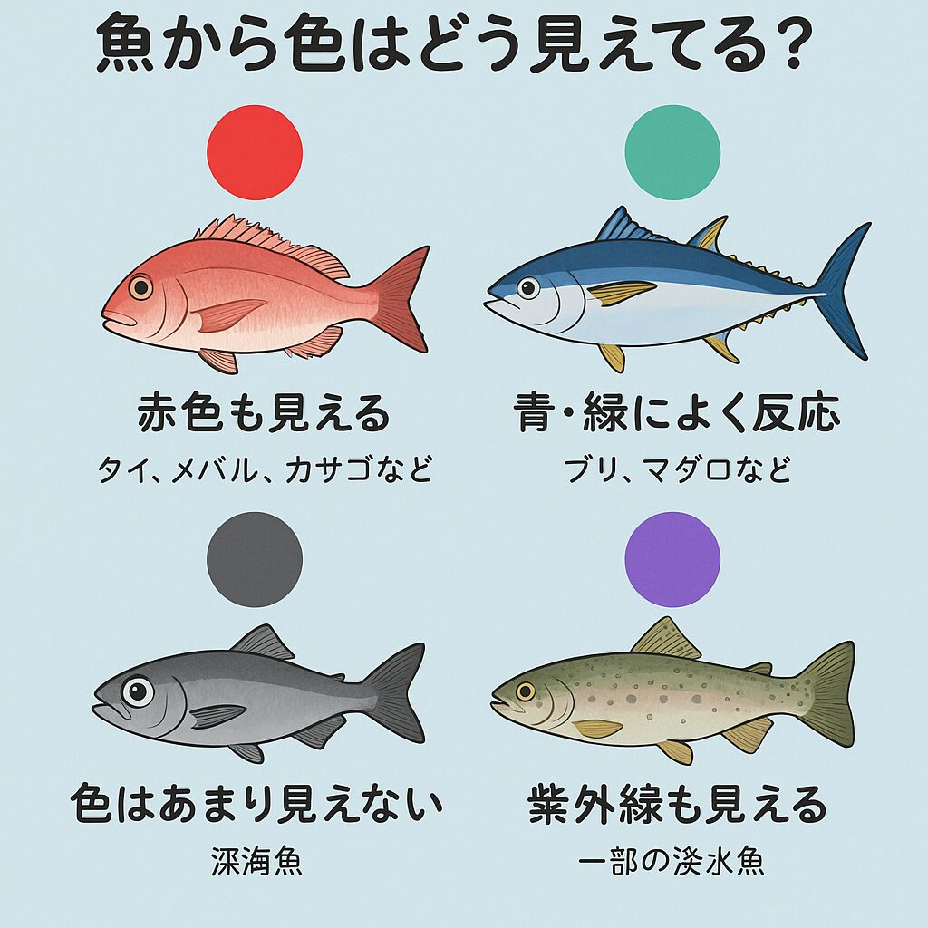 ・ただし、浅瀬の魚(メバルやカサゴなど)は赤を認識できる種類も多い