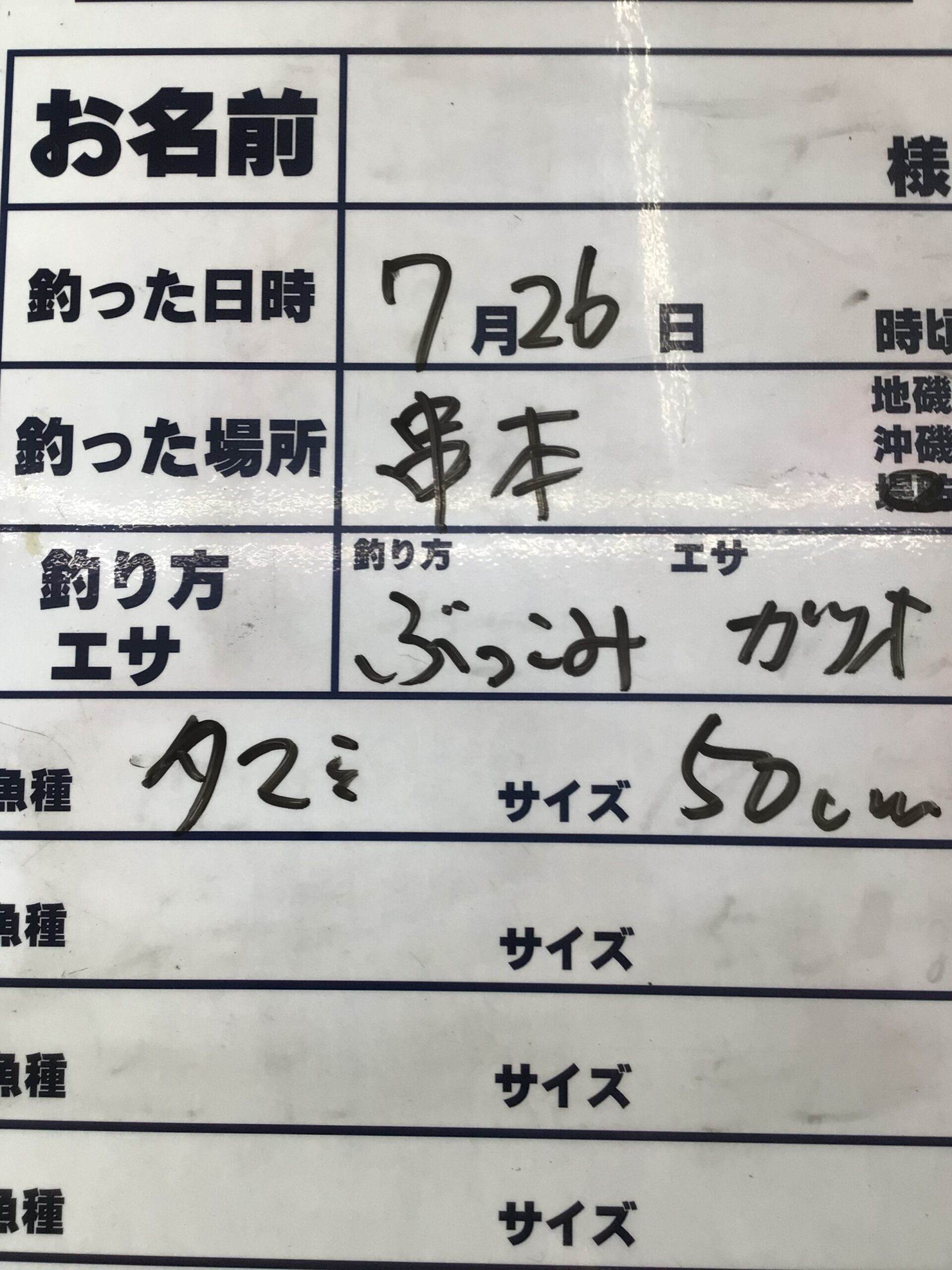 7/26ブッコミ釣りでタマミ釣果