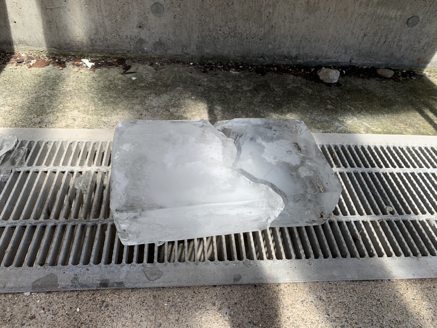 売り物の氷が割れてしまっていたので外に放置して何時間持つか見てみました。