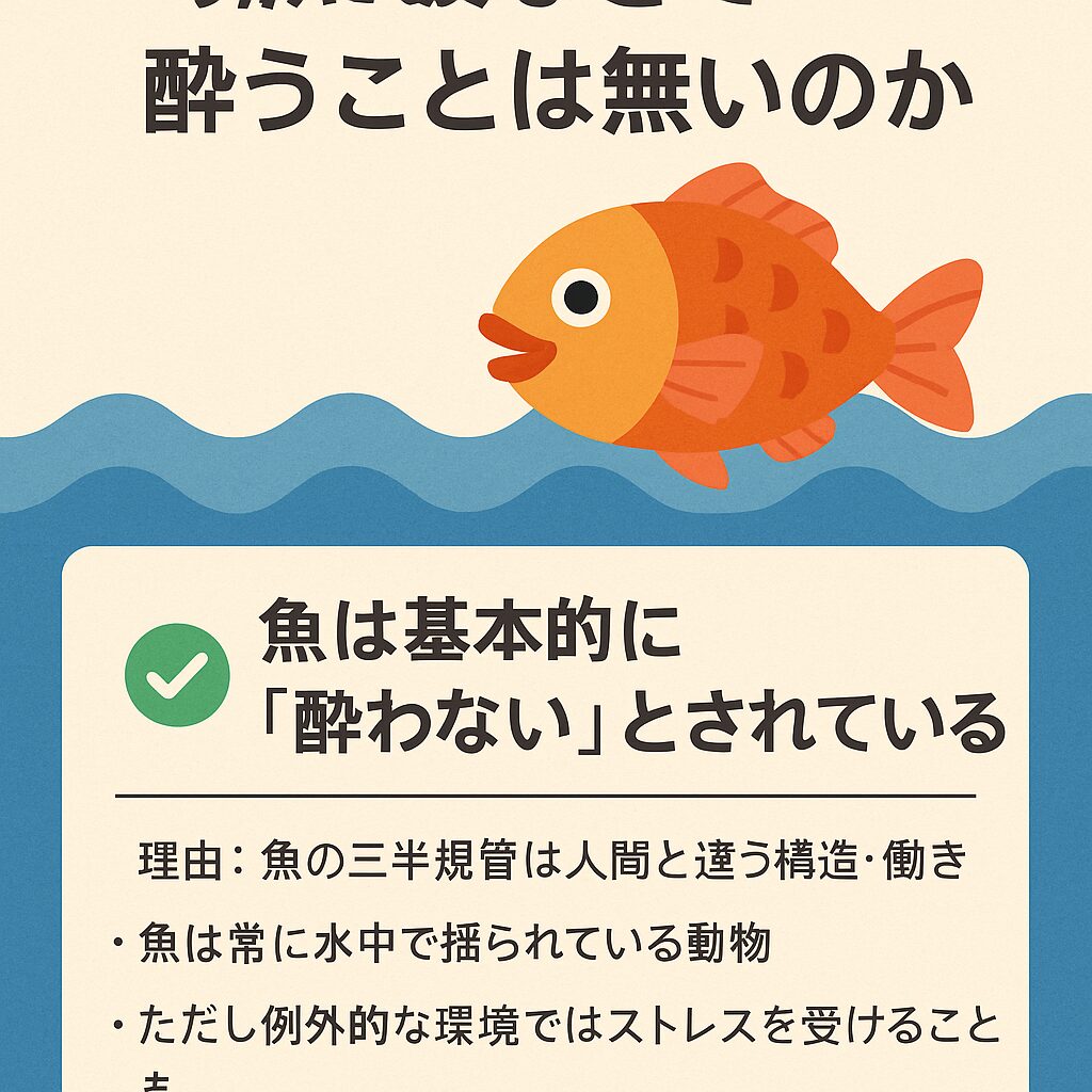 ✅ 魚は基本的に「酔わない」とされています。