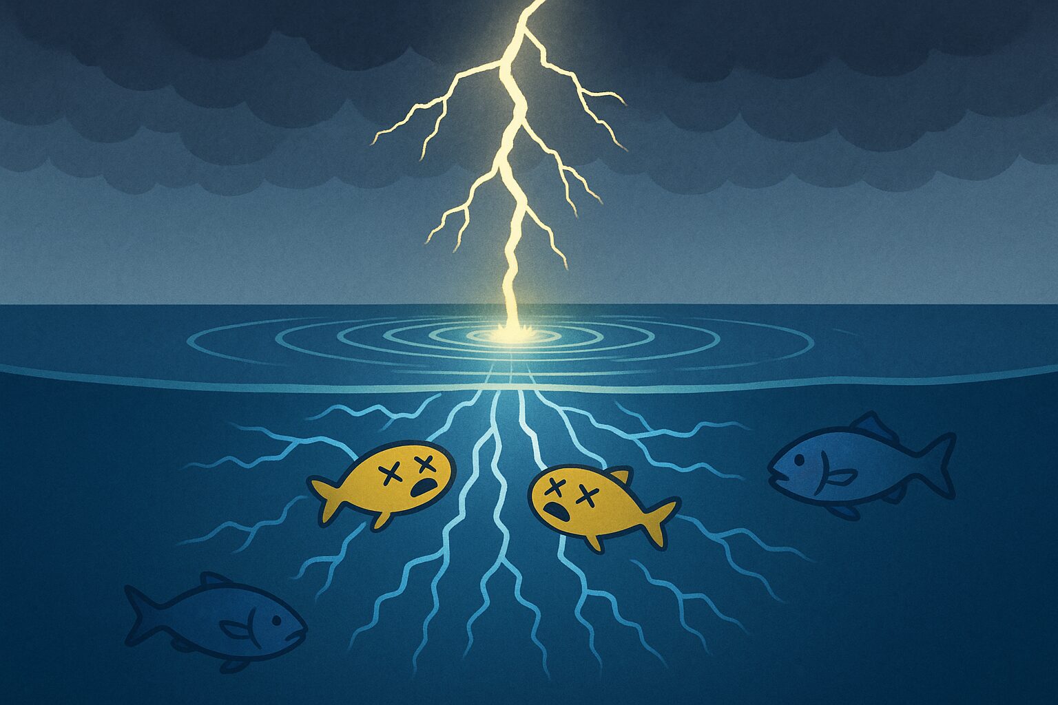 海に雷が落ちた場合、魚への影響は主に「電流の伝わり方」と「魚の位置(水深)」によって変わります。以下で詳しく解説します。