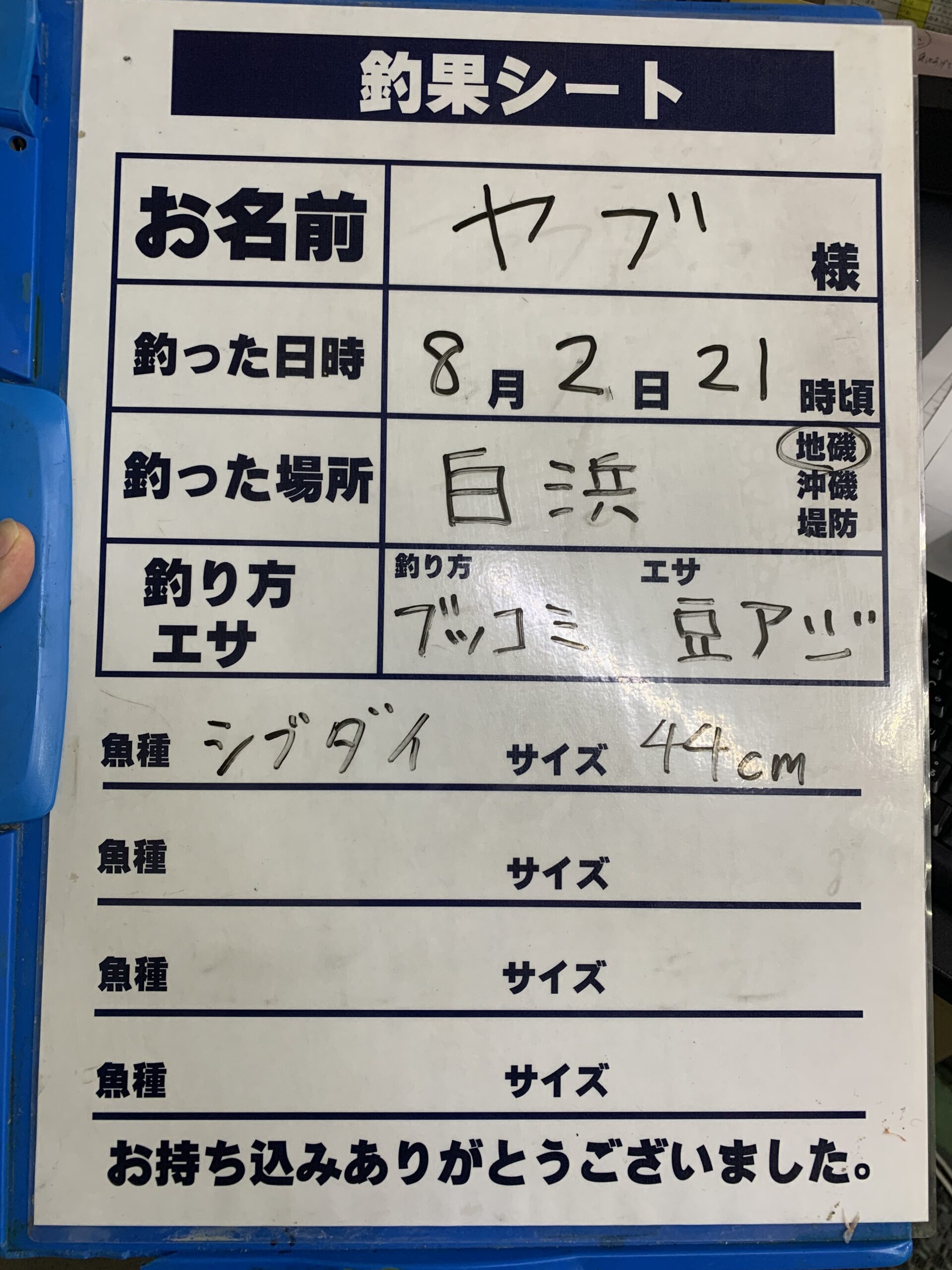 8/2白浜地磯でシブダイ44cmの釣果持込。豆アジでブッコミ!