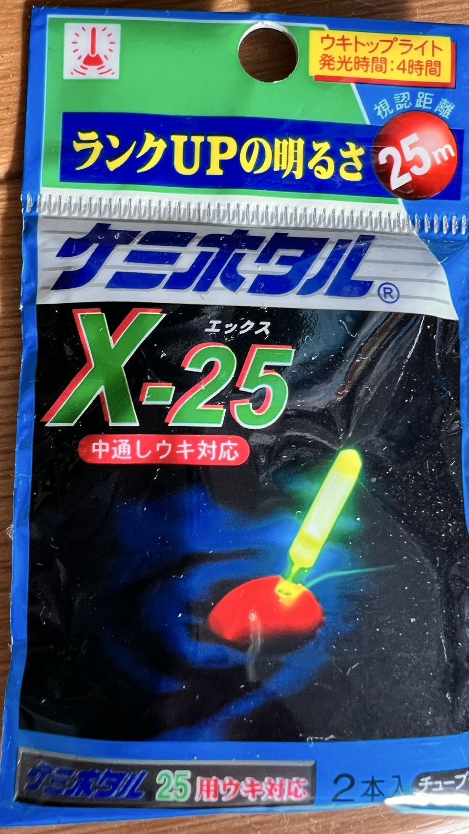 ケミホタルX-25は、夜釣りでウキを光らせるための発光体です。