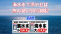 釣太郎では、魚の鮮度を最大限保つための**海水氷(1kg 200円/3kg 400円)**を販売中。
