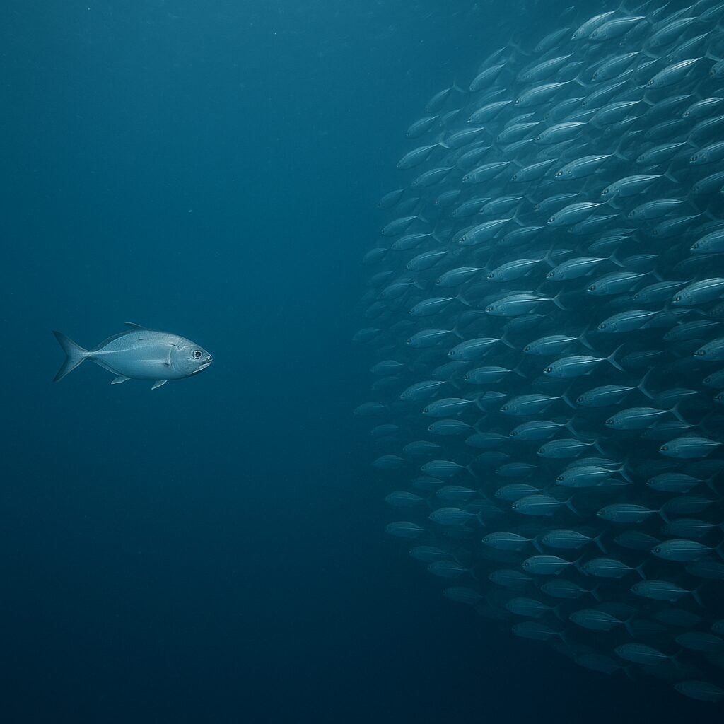 魚の多くは「群れ」で行動することで安全性や効率を高めているため、単独行動になるとさまざまな不利が生じます。